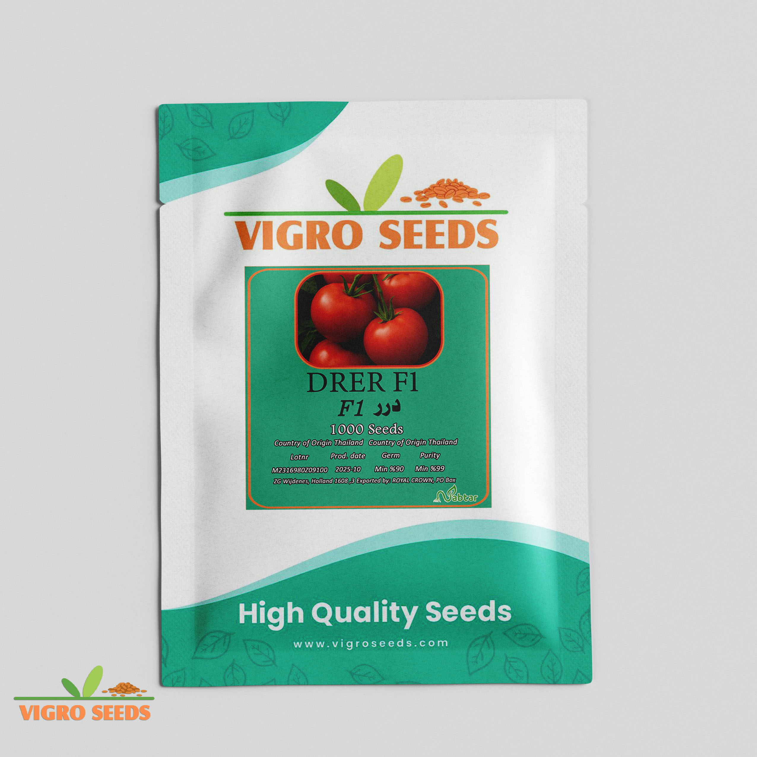 Seeds of Drer F1 are a high-yield hybrid tomato variety, characterized by round fruits with a deep red color and excellent plant vigor, making them an ideal choice for commercial and professional cultivation.